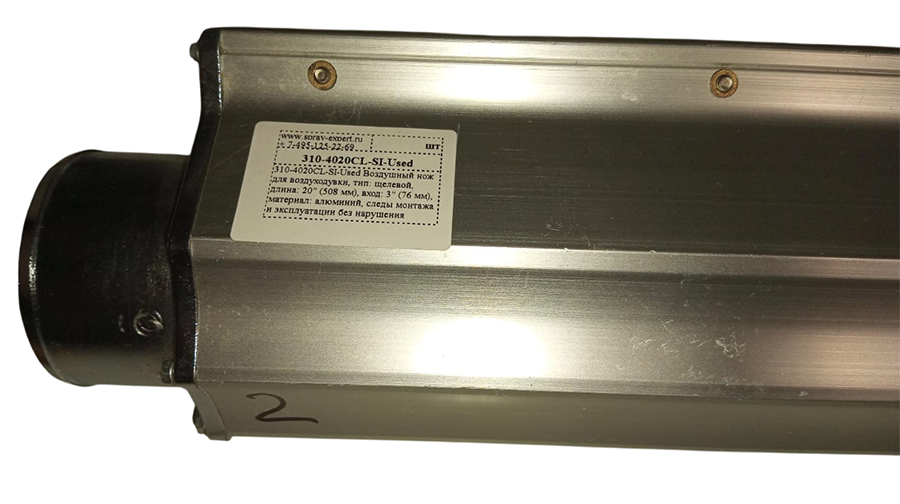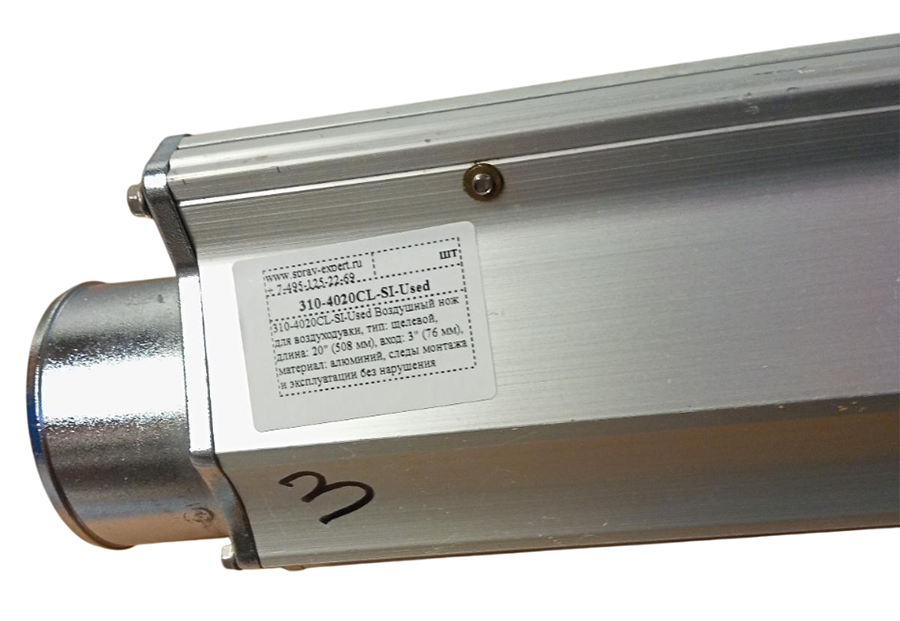 310-4020CL-SI-Used Воздушный нож для воздуходувки, тип: щелевой, длина: 20" (508 мм), вход: 3" (76 мм), материал: алюминий, следы монтажа и эксплуатации без нарушения геометрии и тех. параметров.